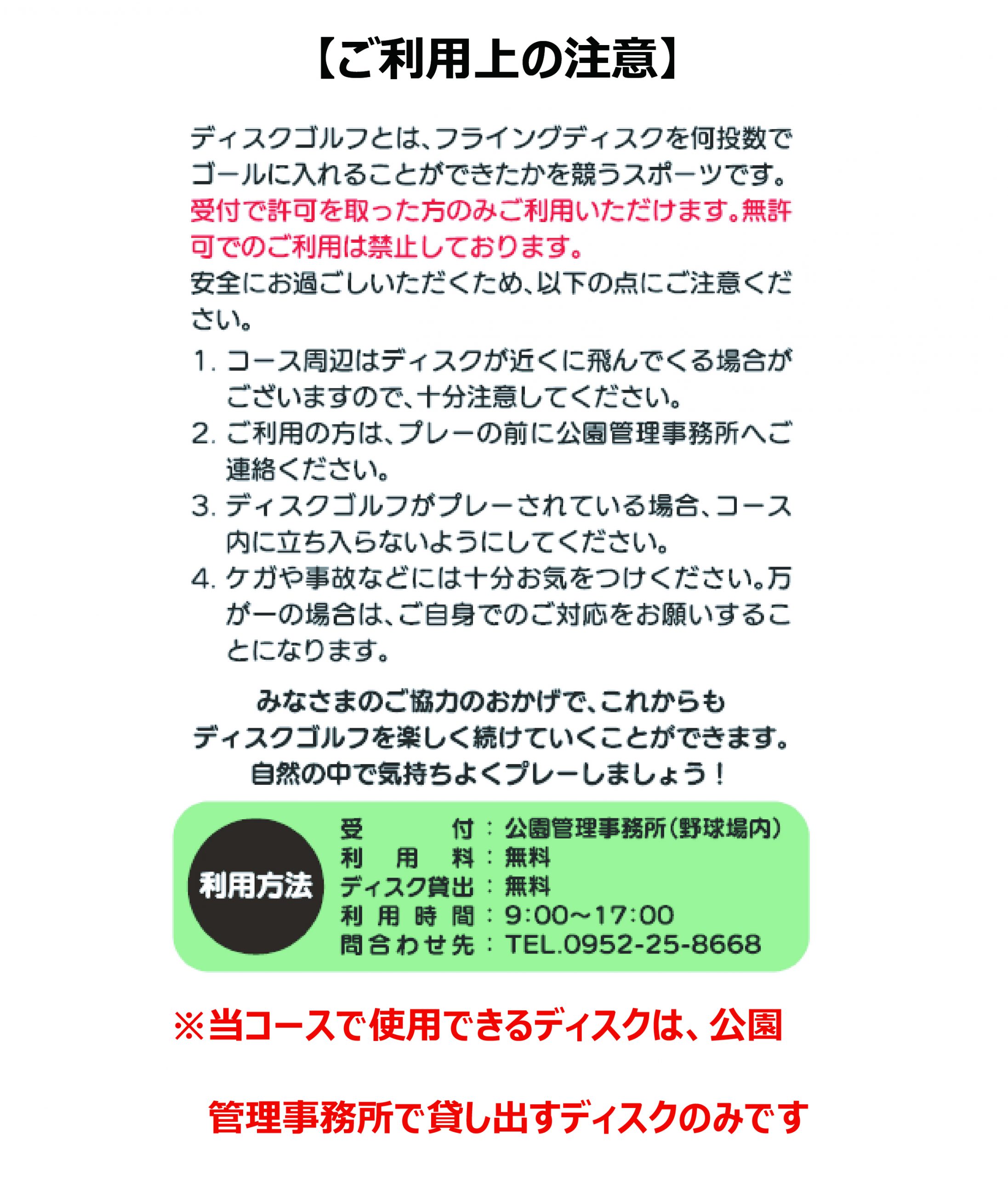 佐賀県立森林公園 > インフォメーション > お知らせ > ディスクゴルフコースオープン! お知らせ ディスクゴルフコースオープン! 2025年09月22日(月) 2025年10月1日(水)ディスクゴルフコースがオープンいたしました。 皆様のご利用をお待ちしております。 Facebookでシェア twitterでツイート はてなブックマーク Google+でシェア カテゴリー お知らせ お知らせ・募集 イベント情報 インフォメーション 各種大会 最近の投稿 『じゃぶじゃぶ池』終了のお知らせ 【11/1開催】「秋の公園ウォーキング」 【11/8開催】「自然池の池干しと生き物調査」 第12回GGペア交歓大会が盛大に開催されました! ディスクゴルフコースオープン! 森林公園小学生駅伝大会 参加者大募集! 「じゃぶじゃぶ池」利用のご案内。 アーカイブ 2025年10月 2025年9月 2025年8月 2025年7月 2025年6月 2025年4月 2025年3月 2025年1月 2024年12月 2024年11月 2024年10月 2024年7月 2024年6月 2024年4月 2024年1月 カテゴリー お知らせ お知らせ・募集 イベント情報 インフォメーション 各種大会